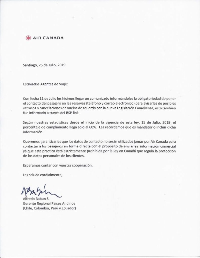 AIR CANADA: Recordatorio datos Publicado por AVILES WTS Fecha 30 julio, 2019 Estimadas, Estimados Agentes, Adjunto enviamos un recordatorio sobre la importancia de ingresar el contacto de sus pasajeros. Mucho agradeceremos su apoyo con esta práctica importante. Compartir: AVILES WTS Noticia anterior Delta amplía el reconocimiento facial optativo 30 julio, 2019 Siguiente noticia Air Canada Rouge 30 julio, 2019 Te puede interesar ACTUALIZACIÓN CONVENIOS TC 19 febrero, 2021 Descarga REQUISITOS IMPORTANTES PARA INGRESAR A EEUU 27 enero, 2021 EASTERN AIRLINES: Ahora ya esta con nosotros – Information GDS 14 agosto, 2020