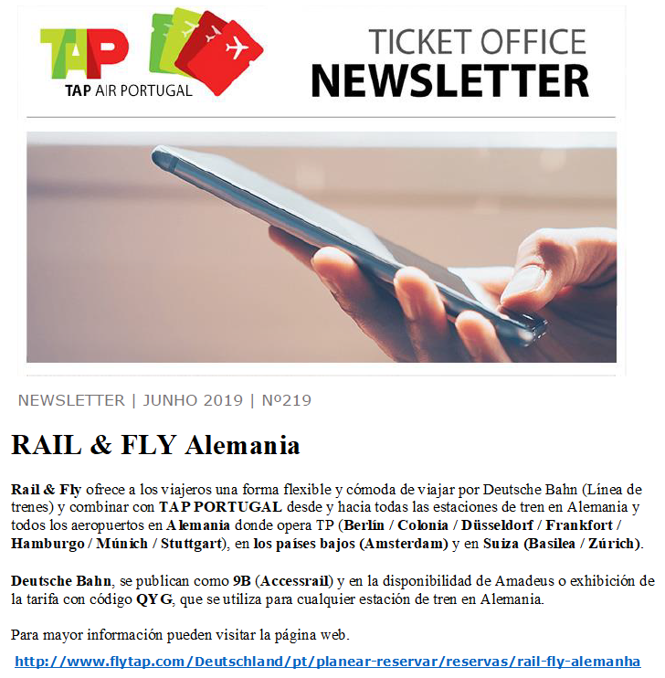 APG: NUEVO SERVICIO DE TAP ” RAIL & FLY ” en ALEMANIA Publicado por AVILES WTS Fecha 31 julio, 2019 Compartir: AVILES WTS Noticia anterior Air Canada servicio Premium! 31 julio, 2019 Siguiente noticia APG: PROMOCIONES THAI LION AIR 31 julio, 2019 Te puede interesar ACTUALIZACIÓN CONVENIOS TC 19 febrero, 2021 Descarga REQUISITOS IMPORTANTES PARA INGRESAR A EEUU 27 enero, 2021 EASTERN AIRLINES: Ahora ya esta con nosotros – Information GDS 14 agosto, 2020